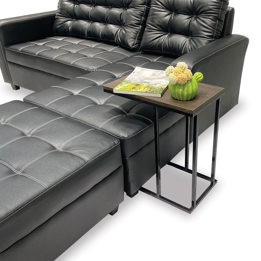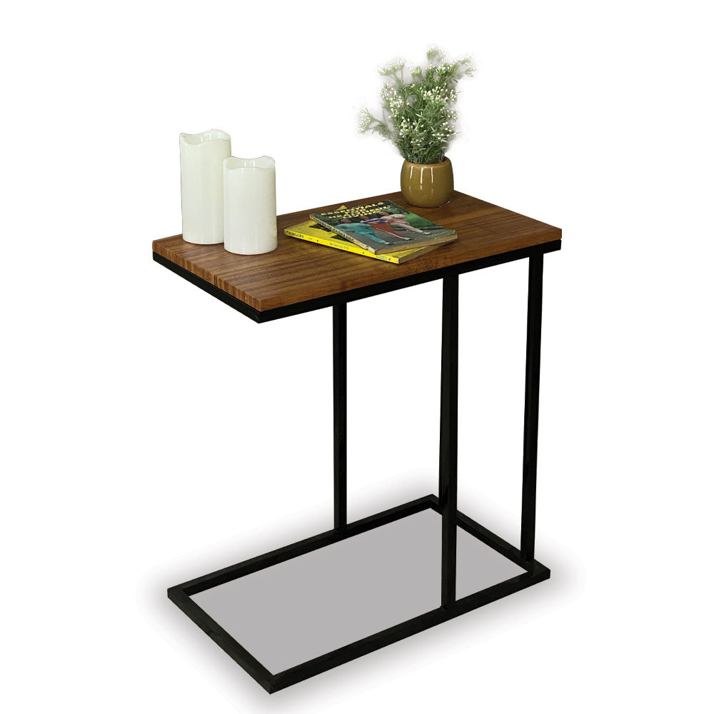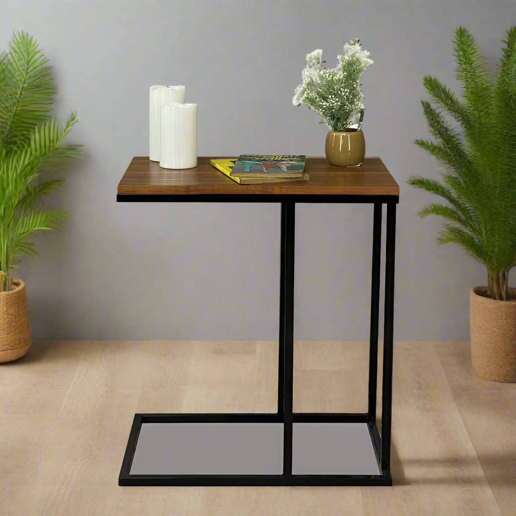 Side/ laptop table. Laminated top. It's easy to move around and at home with it's light weight.