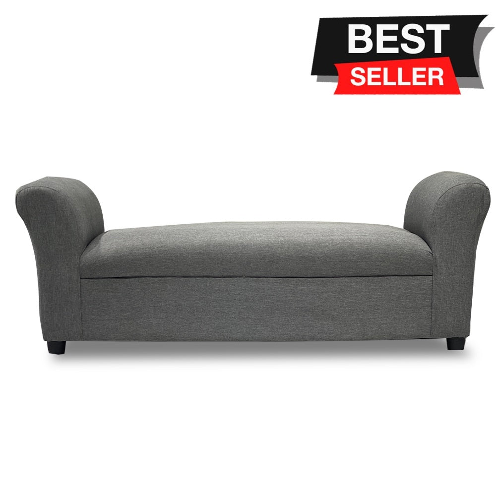 Fabric bench divan sofa with armrest.