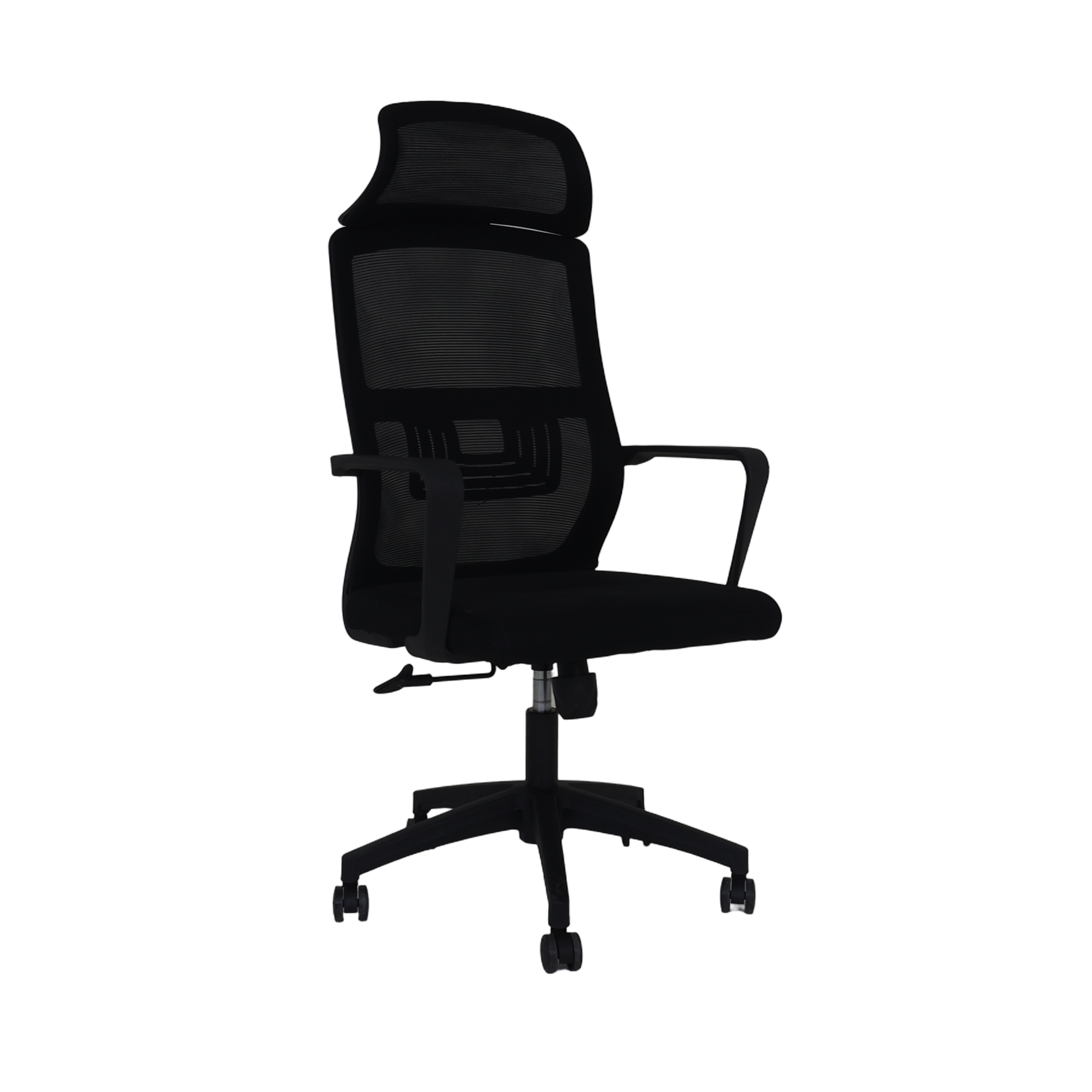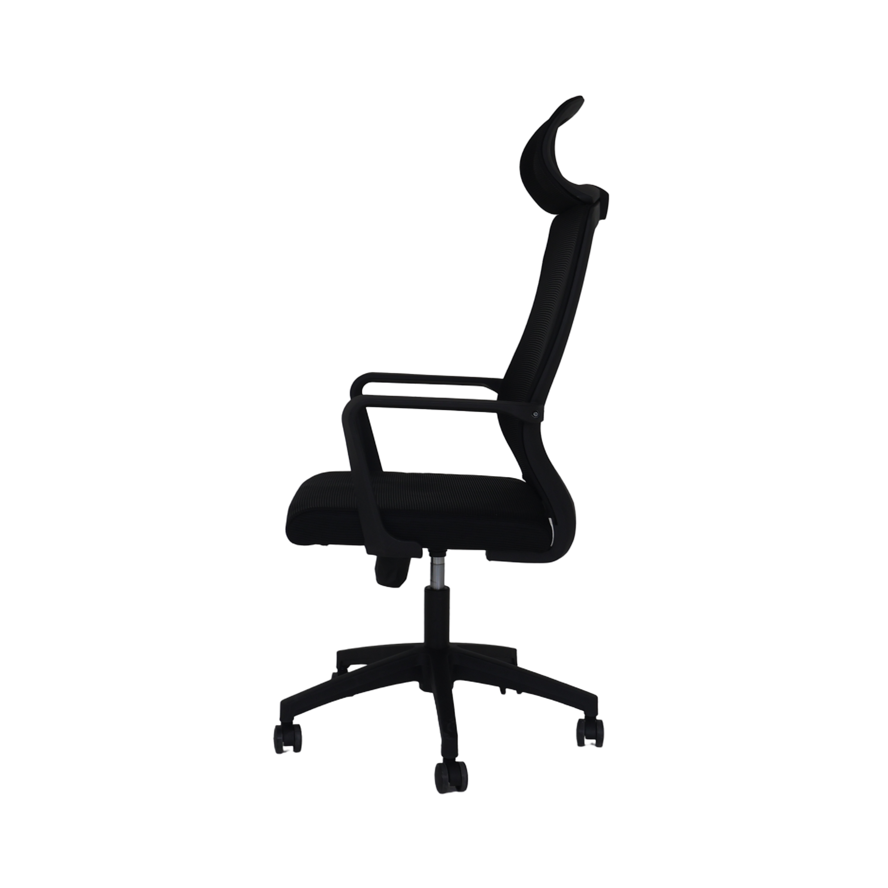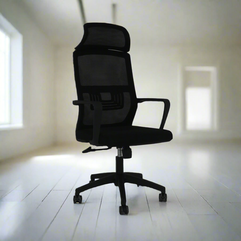 High back Executive Chair. Fixed armrest with lumbar support. High adjustment tilt mechanism with headrest.