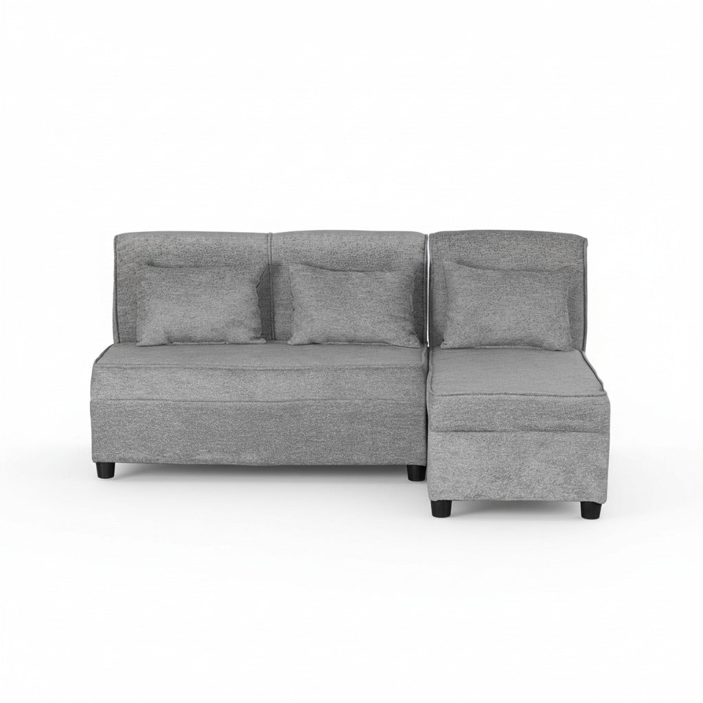 Compact fabric sectional sofa with 3pcs small pillows.
